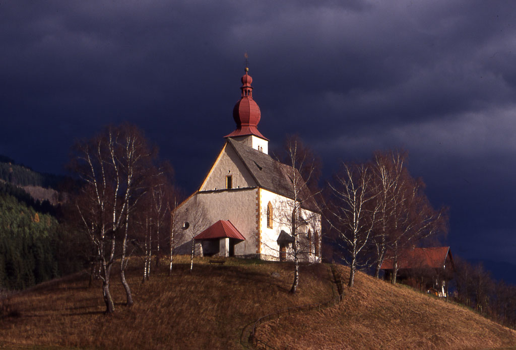 Nördlich von St. Peter in Holz erhebt sich auf einem Hügel inmitten von Feldern die spätgotische Wallfahrtskirche Maria Bichl. Die Entstehung der Kirche knüpft sich an eine Sage. Fromme Hirten hatten an einem schönen Birkenstamm ein einfaches Marienbild gehängt, vor dem sie täglich in die Knie sanken und um Schutz und Segen für ihr Hab und Gut beteten. Weil ihnen dieser Schutz gewährt wurde, bauten sie schließlich eine hölzerne Kapelle, aus der später die Kirche Maria in den Birken wurde. Als die Birken dem Wiesenland weichen mussten, sprach man nur noch von Maria am Bichl.